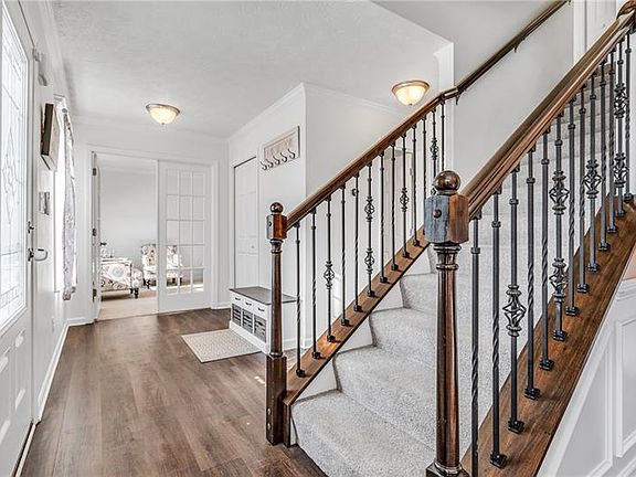 Why wait to build when you can practically have brand new now? This beautiful home is 2.5 years young and loaded with all the details. The first floor impresses with beautiful, high performance flooring throughout main living areas; welcoming foyer; decorative crown molding; stylish wainscoting in the dining room; French doors leading to the office; gas fireplace in the living room; and a fantastic layout for ease of living and entertaining! The large kitchen is a delight and features stunning, waved granite; an oversized island; SS appliances; tile backsplash; double sink, large pantry; and plenty of cabinet space. The second floor features a spacious Master with walk-in closet and an en-suite bath with double vanity and tile shower surround, plus 3 additional BR and a full bath. Other features you will love are the finished basement, fenced in backyard with 2 patios and built-in speakers, and the charming country setting!