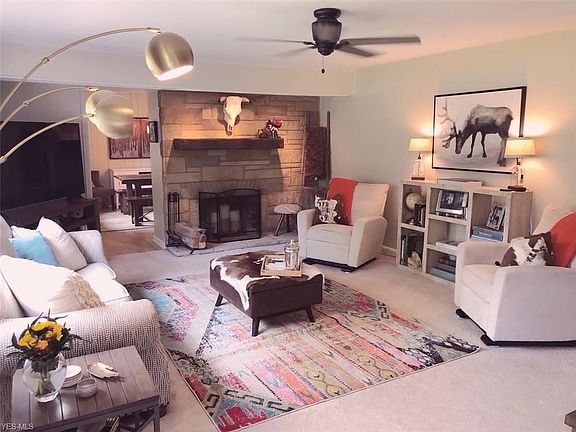 Move in ready home located on 3 parcels with many upgrades. Private back yard with patio and fire pit - a great gathering area! Inside living room with stone, wood burning fireplace leading to eat-in kitchen with newer appliances. Hidden bar with built-in cabinets for storage. Family room with wall of windows and wall of built-in shelving. 3 bedrooms and 2 car attached garage. ***7/6/2019 - NEW! Central Air Conditioning Installed AND New Garage Door!