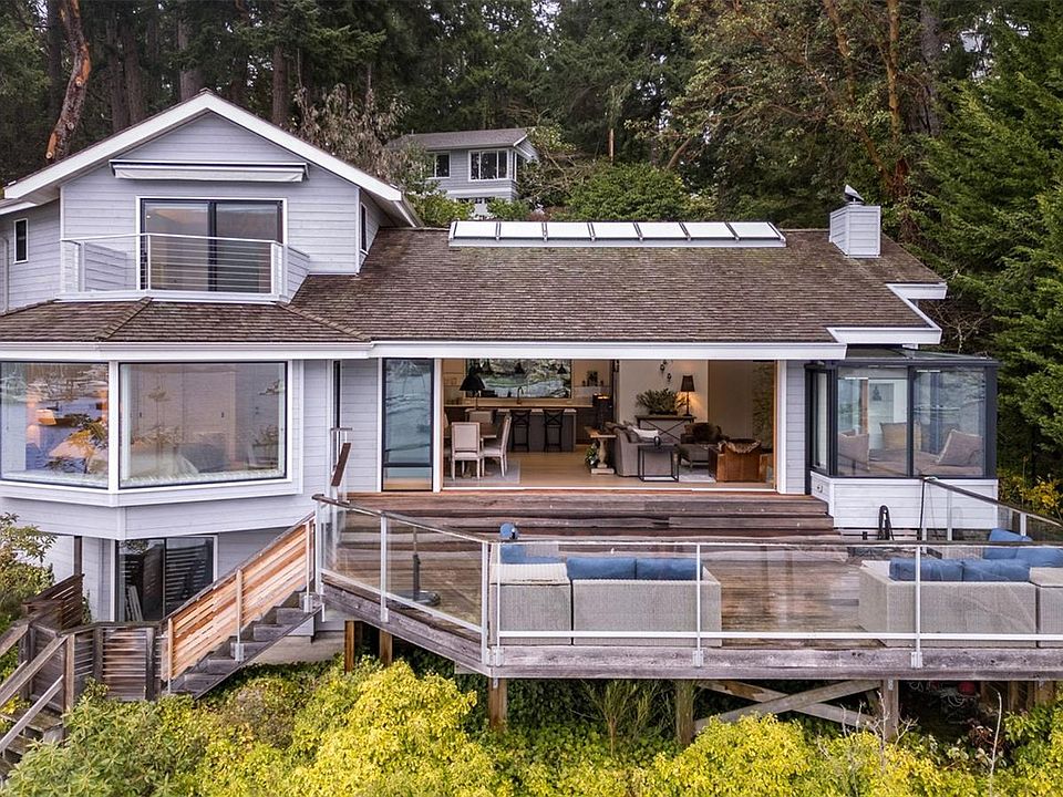 This bespoke home and low-bank oceanfront property offer an extraordinary location at water's edge and the best of all worlds: front row seats to Salt Spring's harbour and village amenities, serene privacy with gardens surrounding, and luxury in a custom residence beautifully updated throughout its 80 year existence. A custom coach house, funicular, and fully permitted dock make this a perfect spot for boaters, for family and friends. Aesthetic as well as mechanical and infrastructure improvements make up a long list of upgrades, providing the ultimate in island comforts. Vaulted and skylit ceilings augment south-facing light already streaming through the glass door wall fully opening to the spacious entertainment-ready deck. A modern open plan layout comprises a spacious living room, dining area capable of seating a minimum of 10-12 guests, delightful kitchen, wine storage, walls for art, all creating a profound sense of place. Option includes furnishings/housewares, watercraft.