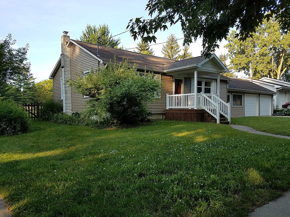 The perfect starter home with 2 bedrooms, 1 bath, and many recent upgrades. Newer roof, siding, and front porch. Kitchen recently remodeled, appliances included, newer hot water heater. Hardwood floors throughout. Laminate floor in kitchen. Plenty of kitchen storage. 2 car garage attached to enclosed breezeway. Built in shelving in basement provides a great amount of storage. Large, fenced back yard with fire pit, treehouse, swing set, and 10x8 shed on a concrete pad. Quiet neighborhood. Close to everything. 2 blocks from elementary school, park with tennis courts in backyard, just a couple miles from freeway, close to downtown with businesses, library and bike path. Offers from buyers working with realtors will also be considered. Contact us to schedule your private showing beginning May 7th!