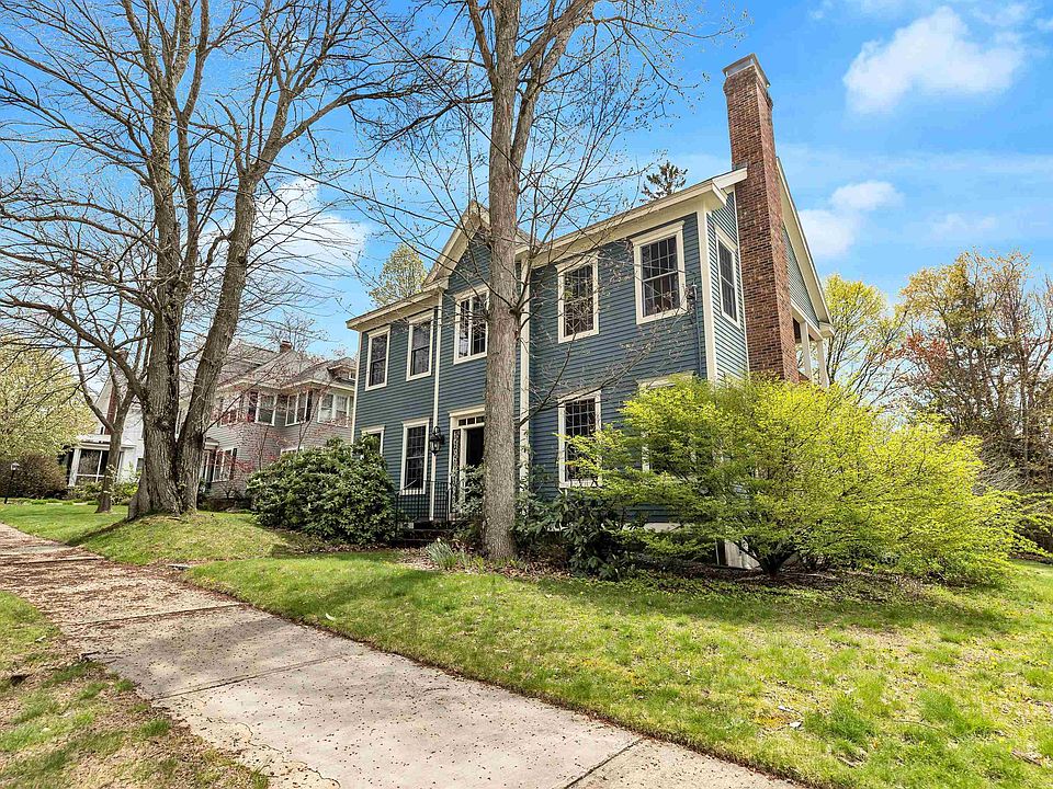 Perfectly situated on a corner lot in Manchester's North End sits this beautiful 12 room Colonial with a contemporary flair. As you enter the foyer, you’ll immediately appreciate the gleaming hardwood floors that shine throughout the home. You will notice the living room with a brick fireplace open to the dining room that overlooks one of two covered porches and the designer kitchen with granite counters, pantry, a gas range and large island perfect for your charcuterie parties. The flexible first floor also includes an office or guest bedroom and adjacent full bathroom. The second floor features a fabulous primary suite with a full bath with tile floor, double granite vanity and soaking tub, large closet & private covered porch for your morning coffee or a late night glass of wine. 2 more generously sized bedrooms with great closets (one walk-in) a full bathroom w/ tile & separate laundry room.The private third floor hideaway includes the 4th bedroom & large den both featuring custom built-ins, skylights & storage in eaves for extended family, teens or work-from-home space. Combine this with a full unfinished basement, central A/C provided by 2 separate air handlers, irrigation, natural gas FHW heat, public water and sewer, mudroom and a 2 car garage with storage for perfect city living! Showings begin at the Open House Friday, 5/12 at 4:30-6:00 PM.