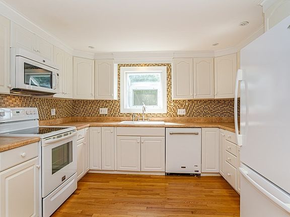 Welcome to Reading. Ready for immediate occupancy. The possibilities are endless for this lovingly maintained Cape with a traditional floor plan. Located at the end of the street. Enjoy nature while sitting in the large enclosed 3 season porch, nestled in the private back yard abutting conservation land. Family owned for 50+ years, the home includes newer windows & roof, with hardwood floors throughout. The 1st floor features a bright & sunny living room with a traditional fireplace, a dining room with built-in china cabinet, & eat-in kitchen. Added bonus 1st floor bedroom. The second floor includes 2 spacious bedrooms with a third room to be used as an office, or easily converted to a full bath. The basement is partially finished, carpeted space with a wood burning stove & a full bathroom. For the handyman in the family, there are 2 workshop spaces. Build sweat equity in this outstanding neighborhood.