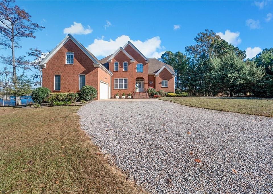 Welcome to Paradise in Perquimans County! This beautiful waterfront home in Hertford, NC, offers the ultimate retreat for relaxation and recreation. Nestled in a cul-de-sac within a water community, this spacious 3-bedroom, 3.5-bathroom home includes an additional flex room that can easily serve as a fourth bedroom, office, or playroom. Inside, you'll find an open-concept layout with gorgeous water views, creating a bright and inviting space for both entertaining and daily living. The home features two primary bedroom suites—one on the main floor and one upstairs—offering comfort and privacy. For added convenience, there are two laundry rooms, one on each level. Enjoy cozy evenings by the gas log fireplace, and benefit from energy-efficient geothermal heating. Outside, the property shines with a private dock, well-suited for boating and fishing, and a spacious double-car garage. Embrace the peaceful waterfront lifestyle in this incredible home!
