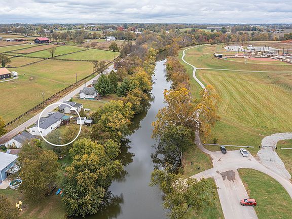 Fabulous location right on the Elkhorn! Beautiful one level home with loads of updates, large yard backing to a gorgeous section of the creek & oversized 2 car garage. Home renovated in last 5 years w beautiful granite kitchen counters, updated cabinets, pantry, attractive built-in pot holder strips & tile backsplash in kitchen, stainless appliances approx 1 year old, renovated full bath, primary suite w 2nd full bath & walk-in closet added, along with a convenient drop-off zone by garage, updated laminate flooring, tile and carpet. Wonderful covered deck overlooks spacious fenced yard. Huge 2 car garage w tall ceilings & updated carriage style garage doors. Nice laundry room added with built in cabinet storage. Windows have been replaced in recent years. And More! Such a unique, peaceful location on low traffic road! Enjoy sunsets and scenery with the horses grazing in the picture perfect pasture across the street and fish jumping in the Elkhorn out back; hop in your bass boat or kayak from your backyard! Convenient location walk to Great Crossing high school, Canewood golf course less than 2 miles, Toyota 7 miles.