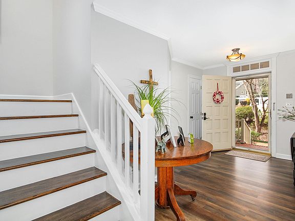 Step inside this lovely townhome in Lochmere to discover a thoughtfully designed interior with gorgeous hardwood floors throughout. The main level features a comfortable living area with easy access to the private outdoor deck, perfect for enjoying the Carolina sunshine. The updated kitchen is equipped with modern appliances, granite countertops and offers ample space for culinary creativity. This 3 bedroom home offers the rare bonus of a finished third floor, perfect for a home office, media room, or additional living space. This beautiful townhome is a short walk to Lochmere's lakes, walking trails & many amenities. Waverly Place shopping & restaurants, Koka Booth, & Wake Med are all just moments away making it an ideal choice for those seeking both comfort and convenience! Don't miss the encapsulated crawl space...a great energy savings feature!