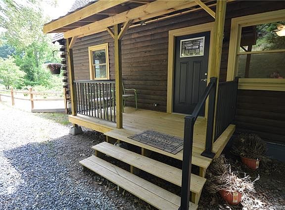 Like new log cabin in quiet neighborhood. Extensively updated in 2018: New roof, kitchen counter-tops and tile back-splash, bathrooms, electrical, plumbing, flooring, ceiling fans, paint and exterior stain. 3 bedrooms, 2 baths, loft overlooking the great room, open floor plan kitchen complete with built-in bay window seat. Propane fireplace that keeps the home cozy in the winter. Front porch, and large back deck to enjoy the mountain views. Creek along the property edge, enjoy the sounds of the water next to your fire pit. Home is move -in ready at an amazing price. This would be ideal for families or a vacation rental property.