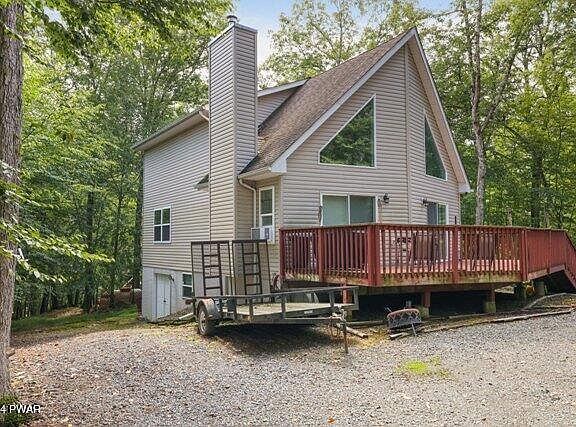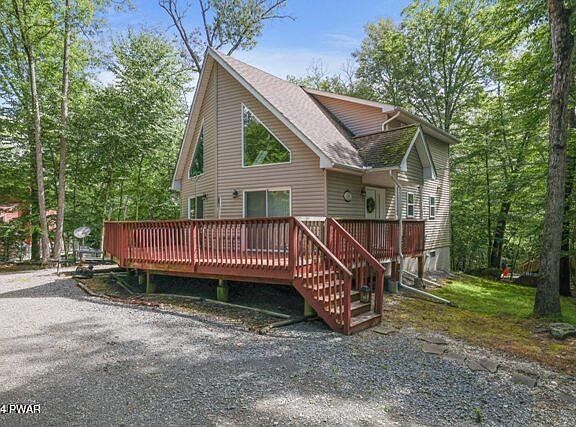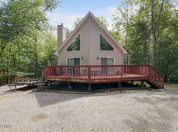 Beautiful Masthope Chalet style home for sale! This home is being sold with the majority of its super nice furniture to get you and your whole gang enjoying Masthope right away! This house features an open floor plan, 3 bedrooms, primary bedroom with large primary bath on the first floor, 2 baths, sleeping loft, living room with cathedral ceiling and fireplace, super nice kitchen and dining rooms, full unfinished walkout basement for your future expansion plans, central heating, circular driveway, and its all on a flat .62 acre lot. Masthope offers numerous amenities like Ski Big Bear, ski lodge, 2 heated outdoor pools, tennis, basketball, pickel ball, arcade, mini golf, restaurant, tiki bar, playgrounds, River Park on the Delaware River, 250 acre motorboating lake with white sand beach area and boat launch, ATV trails, 24hr. security, central water and sewer, and more.