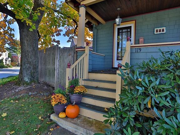 Sitting pretty perched on a small incline is this sweet bungalow styled home with a farmers porch waiting for new owners to write its next chapter. A spacious living room with hardwood floors and french doors lead to the dining room with a built in china cupboard awaiting your favorite collection of dishes. An updated kitchen with seafoam colored cabinetry exude a warm welcoming feel of a summer cottage. The added convenience of a washer and dryer included in the kitchen simplifies the chore of keeping up with laundry. The glass sliding kitchen door overlooks a quaint yard filled with perennials, keeping you connected to nature each of the beautiful New England seasons. A large master bedroom and full bath complete the 1st floor. Use your imagination on the 2nd level with a wide open space that could function as an artist retreat or home office. A bedroom on this floor with its own unique half bath included, may work as a guest suite for out of town visitors, or coveted teen space