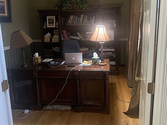 4 large bedrooms with 3 full bathrooms upstairs and 1/2 bath downstairs. Finished basement with large room/office. Large family room with gas fireplace insert that heats up the entire downstairs in the winter. Office off of the foyer. Front and rear stairs.