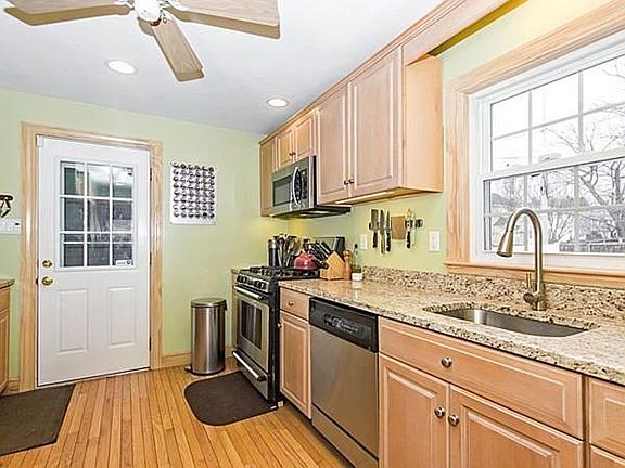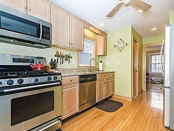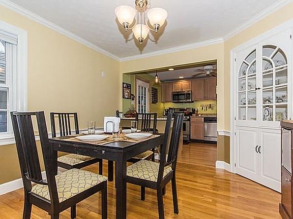 Classic feel with modern updates describes this energy efficient, comfortable center entrance Colonial which sits on a rare corner lot on two sides. Relax by the fire in the spacious living room or get some work done in the new office with windows galore & wood beamed ceiling. Dining room with built-in china cabinet is open into the kitchen with breakfast island, granite countertops and stainless steel appliances. 1/2 bath on this level. Very large master bedroom with walk-in closet. Spacious 2nd bedroom also has a walk-in closet. 3rd bedroom is a perfect kids room or guest room. Renovated full bath with white subway & colorful glass tile. Custom blinds & hardwood floors throughout. Lots of storage and laundry in the walk-out basement. One car garage is nicely outfitted for the car & your tools plus a workbench. The fully fenced yard is adorned with beautiful perennials and a stone patio. Just blocks to the commuter rail, shops & restaurants of Centre Street. See list of improvements.