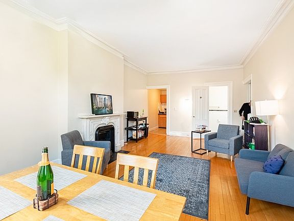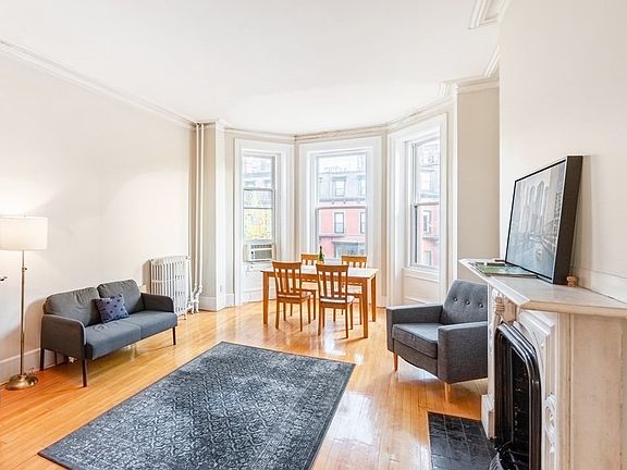 Nestled on the sunny side of Marlborough Street in Bostons Back Bay this is a front facing one bedroom unit which overlooks the charming gas-lit & tree lined street with a bay window, hardwood floors & a fireplace in the livingroom. The bedroom is spacious with good closet storage. Heat and hot water are included in the rent.