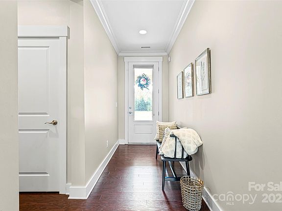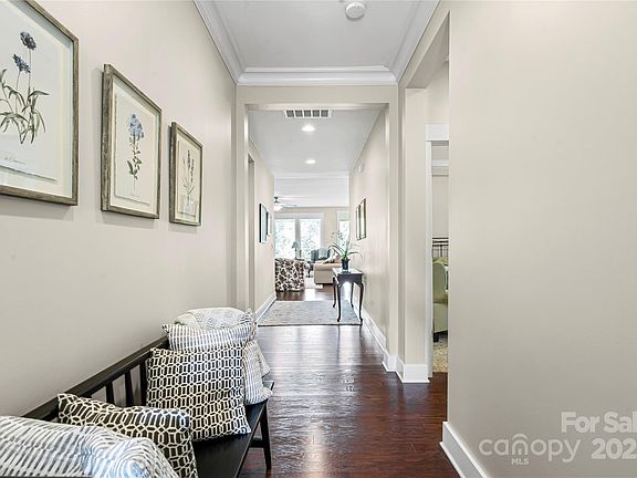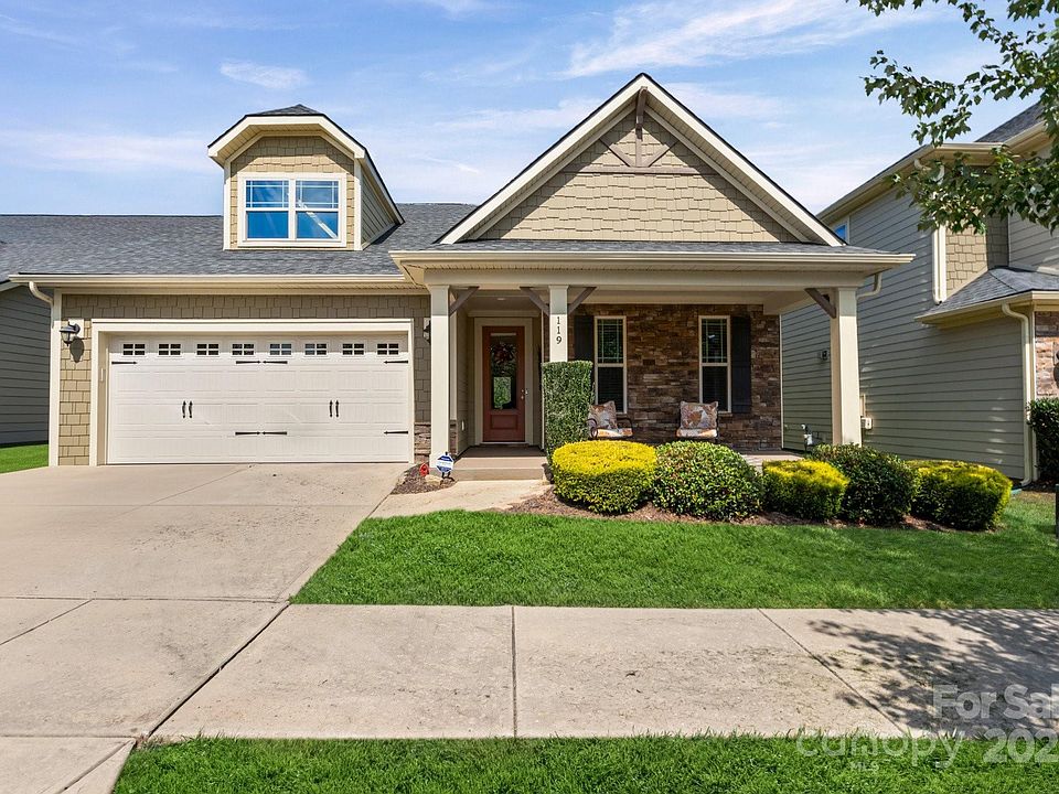 Step into the heart of the home—a gourmet kitchen featuring granite countertops, custom cabinetry, stylish backsplash, gas stove, and a large island that seamlessly overlooks the expansive Great Room, perfect for entertaining or cozy nights in front of the gas fireplace. Enjoy outdoor living with a peaceful backyard, screened-in porch, and a patio ideal for grilling. The inviting rocking chair front porch adds Southern charm, while wooden blinds throughout provide a warm, finished touch. The primary suite boasts a custom closet system for optimal organization. The garage is a standout with built-in cabinets and a finished pebble floor, offering both functionality and style. Washer, dryer, and refrigerator are all included for your convenience. Worry-Free Living - the HOA covers lawn care, landscaping, and irrigation, allowing you to enjoy the community’s amenities stress-free. Community Perks - Johnson Manor features scenic walking trails, a dog park, a stunning clubhouse with a full kitchen, a fitness center, and a vibrant community garden. You're just a short walk to the shopping center and a quick drive to charming downtown Davidson.
