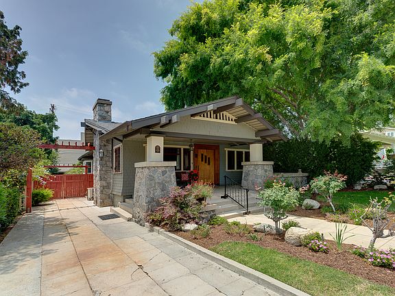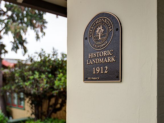 Situated in North Monrovia sits this historically designated Mills Act home #56. Featuring greatly reduced tax savings,this true 1912 craftsman home boasts original character with the modern conveniences.The glistening hardwood floors of the living room are framed by the box beamed,gas burning fireplace w/ built-in benches.The front bedroom features custom craftsman molding & a built in desk w/ bookshelves & an original trundle bed to the home.The dining room is divided from the living room w/ the original built-in sideboards which includes a built-in secretary's desk.The dining room features a plate rail,the built-in china cabinets w/ both clear and stained glass cabinet doors.The kitchen showcases the modern day amenities w/ updated appliances,spacious tile counter tops & abundance of storage cabinets.Attached to the kitchen is a room with a built-in bench w/ storage underneath & access to the spacious California basement & wine rack.Two bedrooms showcase Douglas fir hardwood floors,original windows & share a hallway bathroom.The additional room is perfect as a den or guest room.Stairs lead down to the grassy backyard perfect for dining during summer nights. Come see this home before it is sold!