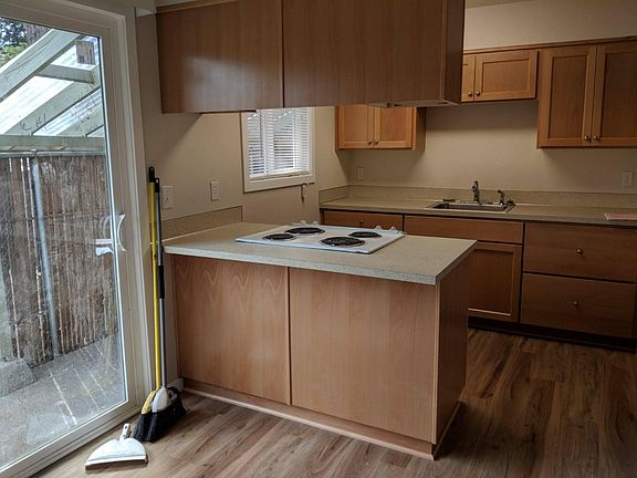 Complete remodel: new hard floors, cabinets, shower/tub, toilet, water heater, doors, windows, blinds, etc. Washer dryer included. Private Patio, fenced yard and off street parking. No pets, no smoking. Available now. Owner/landlord pays trash, water, sewer and yard maintenance. Tenant pays electricity. Back unit.