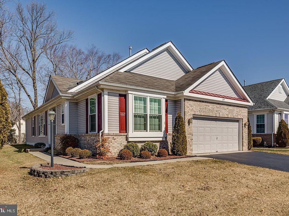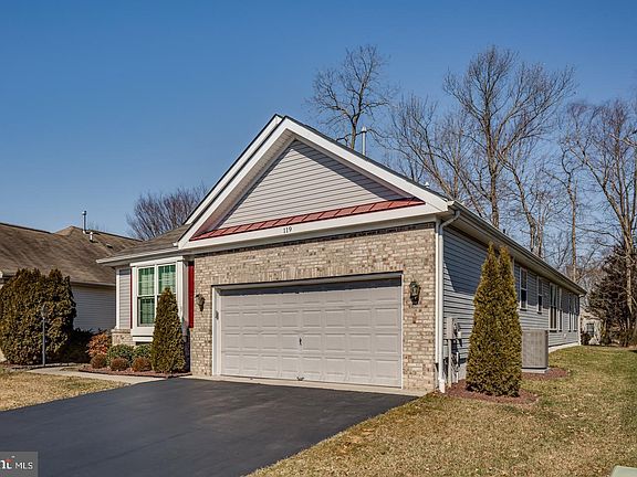 Welcome to 119 Merion Way, located in a highly desirable Senior Community called "The Glen at Masons Creek". This beautiful home is located on a premium lot that offers a big back yard! The current homeowner paid extra for this premium lot that offers more privacy than other lots. This is the "Haverford Model" that includes an upgraded Sun Room, giving you 1870 total square feet of living space. This home offers a large foyer with a huge walk in closet, along with another large closet for linens/coats. There is a large living room 21'11''x 14'9'' that could also include a dining room area if desired. A nice picture window brings in plenty of light! The large eat in kitchen is 13'.0 x17'9" that includes 42 inch oak cabinets, a pantry, a broom closet, electric range with microwave above, dishwasher, refrigerator and work island. Just off the kitchen is the family room 15'3"x12'.0 currently being used as a formal dining room. The upgraded sun room has french doors and is just off the dining room. There are 2 bedrooms and two full baths in this home. The master bedroom suite is 13'4"x 17'.0" has 2 closets, a mirrored double door closet with organizer and a large walk in closet. The master bathroom has a ceramic tile floor, double sinks, a linen closet and a walk in shower. The second bedroom 11'3"x 11'3" is on the other side of the home and offers a double closet. The guest bathroom has a beautiful ceramic tile floor and has been upgraded with a walk-in tub. Beautiful upgraded Plantation Shutters are on the windows in this home. The home has recently been freshly painted with neutral colors. There is a laundry room off the kitchen with a newer washer and dryer and a laundry tub. Some upgrades are: 5 pre wired fans, upgraded DH vinyl windows, crown molding in the living room, family room/dining room, master bedroom, chair rail in the family/dining room, laundry room cabinets. The Heater and A/C are newer. Some amenities that are included in the low association fee are, the newly renovated club house, gym, library, outdoor pool, outdoor patio, tennis courts and many club activities and movie nights! Sounds like a great house! Well it is! Come take a look and you will want to call this your new home! The homeowner is also offering the furniture for sale if you are interested.