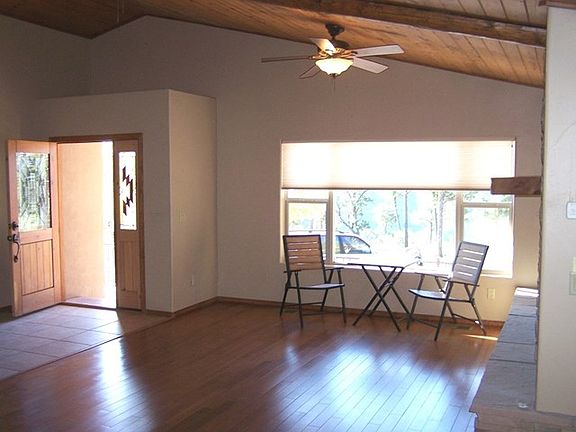 Beautiful mountain home with beautiful valley views. 4 bedrooms, 2 1/5 baths on 2 acres. Open living, dining and kitchen area with beautiful wood ceilings and wood accents throughout. Yard beautifully landscaped and covered back patio. Also has fenced dog yard. A great place to sit and relax and watch all the deer, elk and turkey. Must see to really appreciate this house.
