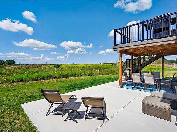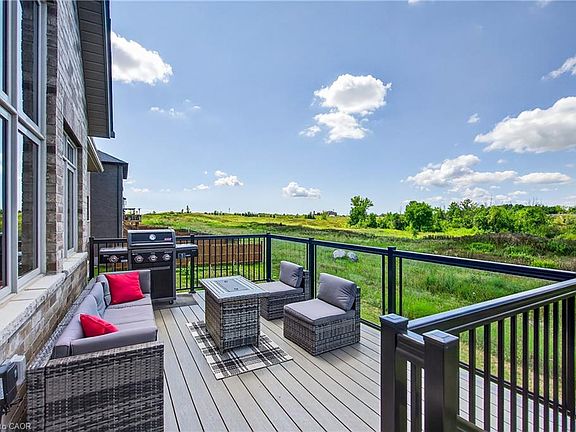Welcome to 119 Midland Place, a 2024 Ballantry-built bungaloft offering 2,336 sq ft of finished living space in one of Welland's most desirable upscale communities. Ideally located close to Hwy 406 for commuters, this luxury home backs onto beautiful green space and features soaring floor-to-ceiling tinted windows in the great room, perfectly positioned to capture breathtaking sunsets. The ideally laid-out main floor includes a quartz kitchen with soft-close cabinetry and a large island with extra storage, formal dining room (also ideal as an office or fourth bedroom), as well as a primary suite with custom walk-in closet and spa like 4-piece ensuite with a soaker tub and glass shower. Main floor laundry provides access to the double car garage, while upstairs offers two additional bedrooms, a full bath, and versatile open loft space. The large walk-out basement is currently unfinished, but is full of potential with a 3-pc bath rough-in and in-law suite capability. Outside, the backyard features gorgeous panoramic views from the composite deck with glass railings, and the new concrete back patio is ideal for spending outdoor time with the family. Only minutes to Niagara Street, downtown, shopping, restaurants, recreational activities, St. Catharines, Port Colborne, and so much more. From quiet evenings on the deck to everyday convenience, this home delivers the luxury lifestyle you've been looking for!