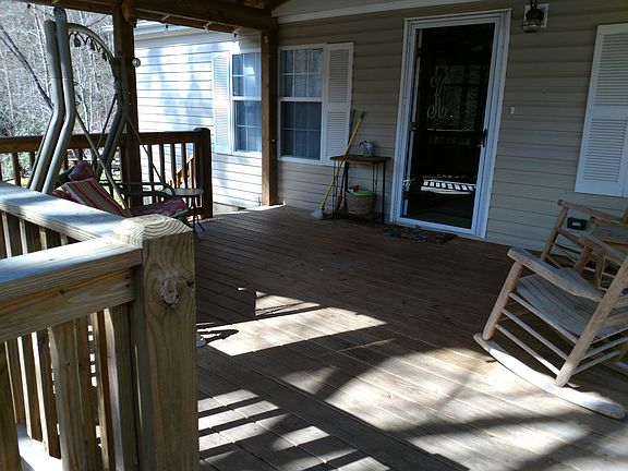 SOLD BY OWNER, WILL TALK WITH BUYER'S AGENTS ONLY. Come enjoy a cup of coffee or hot tea on the large front deck of this home. This is a very large Triple wide. It sits on 2+ acres and is very private. Garage has large separate storage upstairs. 4 Bedrooms with 2 baths, living room with wood burning fireplace plus a den with gas log fireplace. This is a home meant for a large family, or a great vacation rental as bedroom space is plentiful. Central heat and air (new furnace and heat pump installed fall of 2016, (new roof fall 2016) The house is immaculate, very well taken care of. Floors are carpet and vinyl. Large covered front deck for resting and relaxing. Deck on rear of house. This is a steal at $149,900. Approx. $30 road maintenance fee per month.