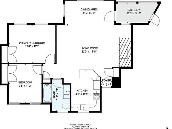 - Total interior livable area: 867 sqft