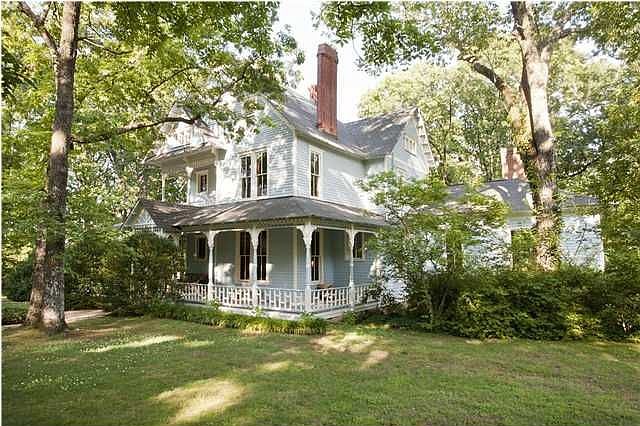 Historic,Victorian house awaits the discriminating buyer who appreciates the charm of yesteryear. Heart pine floors and paneling, 10 foot ceilings on both floors, original hardware, old glass in the windows, orginal damper plates in some of the 7 fireplaces. Updated for today's living, which includes wiring, plumbing, heat. New roof in 2005. 818 square foot guest house has living room, bedroom, bath, kitchenette & loft. Inviting, wrap-around front porch.Unfinished basement has 562 square feet. Huge spacious yard on quiet street, convenient location. Many special ammenities include wine closet, wet bar. Negotiable: washer, dryer, living room rug, wardrobe. Exclusion: work benches in workshop.