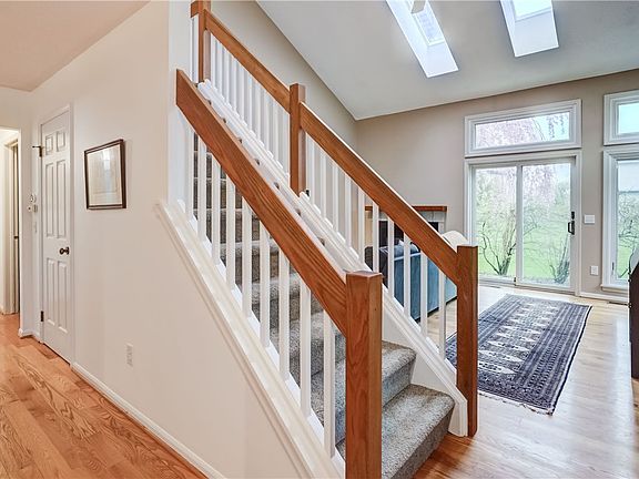 Very bright and open end unit with newer large eat-in kitchen with granite countertops. Dramatic 2 story living room with gas fireplace and skylights. First floor primary bedroom with private bathroom. First floor laundry. Hardwood floors, dining room. Large 2nd floor loft can be used as a 3rd bedroom. Replacement windows and doors, 12 course basement with cedar closet. Delayed negotiations until Tuesday 4/23 at 4pm.