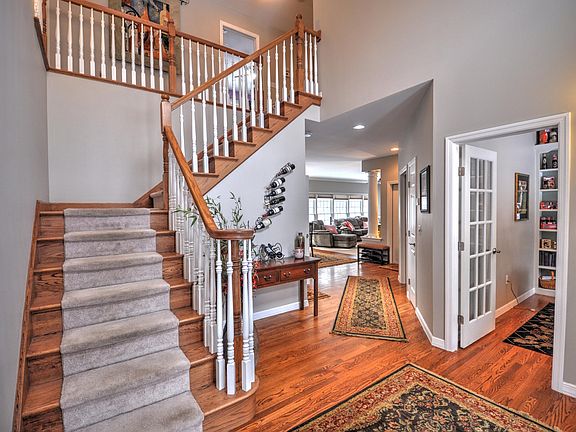 Gorgeous, immaculate custom-built 4-bedroom 4.5 bath home w/an open floor plan & private park-like setting on 2+ acres. Enter through a beautiful foyer w/HW floors & high-ceilings, stroll to your gourmet kitchen w/SS appliances & granite counters which opens to the LR w/FP & abundant windows. Also on 1st are a family room, DR & office. Escape to the 2nd floor & explore 2 bedrooms w/a Jack & Jill bath and a 3rd bedroom & bath. Head to the master suite w/a large walk-in closet, sitting area, master bath w/custom shower, garden tub & dual granite counters. Walk down to the finished lower level great room & bar, full bathroom, extensive storage. Walk-out to your backyard patio & 2-tiered Trex deck, regulation basketball court, 2-car garage & paved driveway. Forced hot-air propane & central AC.