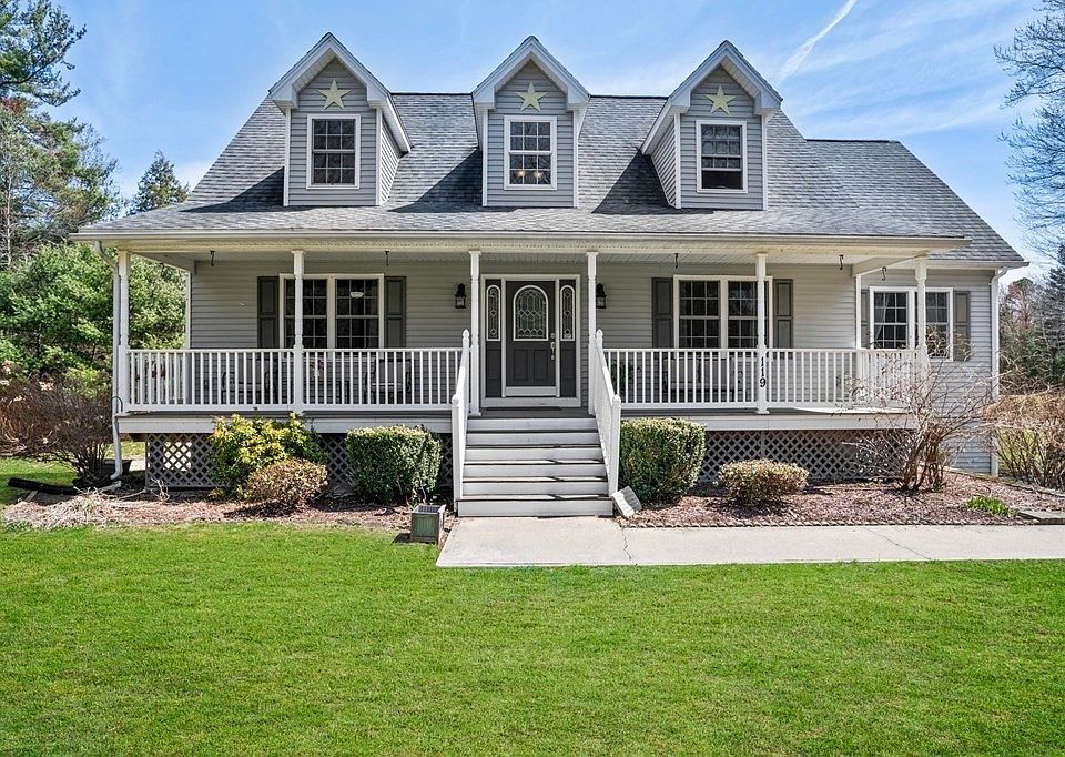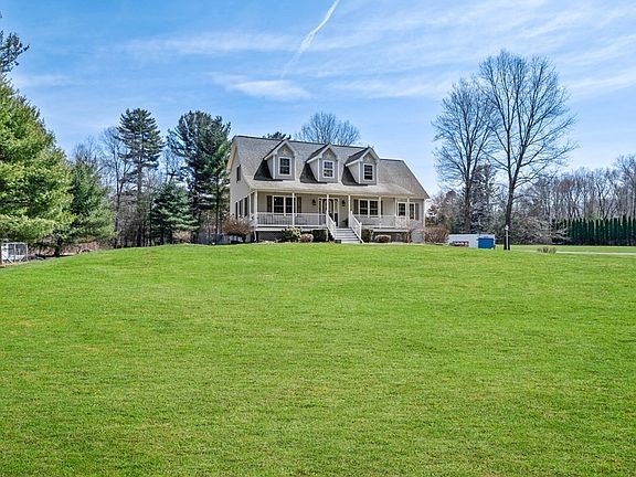 WIDE OPEN SPACES ON ALMOST 2 ACRES OF PICTURESQUE LAND, NESTLED ON A DEAD END STREET. THIS WILL NOT LAST LONG! Come & see this beautiful oversized cape style home with farmers porch & an open floor plan beaming of natural light! The gracious family room with pellet stove opens to the kitchen/ dining area with direct access to the outdoor deck overlooking the backyard. This home is truly an entertainers dream home! The option for 1 floor living is a golden opportunity with 1 bedroom, laundry, & full bath all located on the main level. 3 more large bedrooms await you on the 2nd floor along with 2 full baths. Primary bedroom offers an en-suite bath & also features a dressing area with 4 large closets to choose from. Looking for additional living space then head down to the finished walk- out basement equipped with its own personal outdoor entertaining area. Reap the benefits of having a large yard offering plenty of space for all your toys, pets, a pool, or garden!