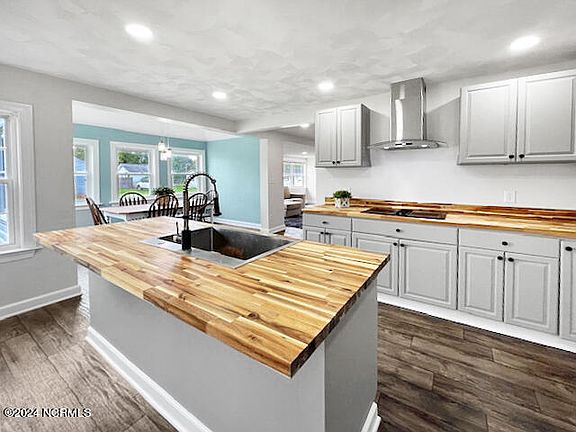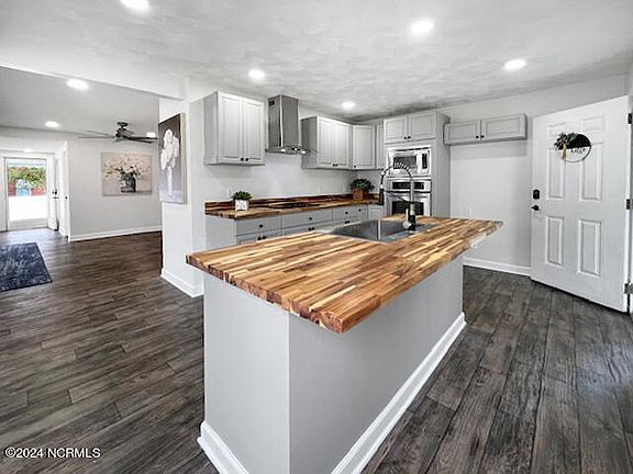 Welcome home! This beautifully updated 3-bedroom, 2-bathroom home is designed for modern living, featuring a spacious interior that invites comfort and style with a designers' flair. The heart of this home is the dream kitchen, equipped with an updated range and dishwasher, complemented by stylish butcher block counters and a deep sink—perfect for all your culinary adventures.