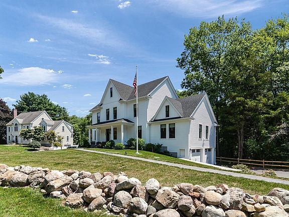 Welcome to this 2 year young builder’s home! This New England Farmhouse Colonial offers a spacious first floor design tailored to those who love to entertain. The kitchen offers a 9’ center island, farmers sink, stunning quartz countertops, stainless steel appliances, recess lighting.  Beautiful great room with cathedral ceiling & gas fireplace. Dining room with accent wall. Gorgeous wide plank hardwood floors throughout, ceramic tile in bathrooms/ laundry rm.  Cathedral ceiling in main bedroom with walk in closet & full bath with tiled shower, double sinks. Additional full bath on second floor with 2 additional bedrooms and large office. Future expansion possibilities with 3rd floor walk-up & large basement with separate entrance & walkway that leads to driveway. 2 Car garage with plenty of parking, over 2 acres of land that offers privacy & backs up to walking trails surrounding Manchester Reservoir. Beautiful country road centrally located near highways and shopping.