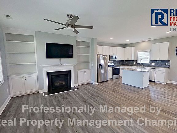 This lovely 3 BD/2.5 BA home is filled with curb appeal and charm both inside and out. The rocking chair front porch will greet you as you enter the main level with its beautiful floors and freshly painted walls. The living room features a decorative fireplace flanked with built-in shelves and cabinets. The open floorplan flows seamlessly into the kitchen and dining area. Loads of cabinets, granite counters, tile back splash, extra-large stainless-steel sink and center work island are found in the well planned kitchen. Stainless steel appliances include a range, built-in microwave, dishwasher and refrigerator. A powder room and separate laundry closet with washer and dryer for your convenience complete the main level. The upper level includes a master bedroom with a generously sized closet and a private bath with stylish barn door entrance, double sink vanity and custom tile shower. The two guest rooms have generous size closets, and the second full bath includes a modern vanity and tub/shower with tile surround. A detached one-car garage and spacious patio in the back yard are additional features. This home is centrally located with easy access to UNCW, Mayfaire and area beaches. We are an Equal Housing Opportunity Management Company and abide by the term of the Federal Fair Housing Act. Tank rental and propane for fireplace is responsibility of tenant. No Cats. Up to 2 dogs, under 60 # each, allowed with prior approval and required pet fees. Aggressive breed list may apply. Contact listing agent prior to submitting application. No Smoking, e-cigarettes or vaping. All applicants over 18 years of age are subject to a background check, including criminal, credit, employment verification, and past tenancy.