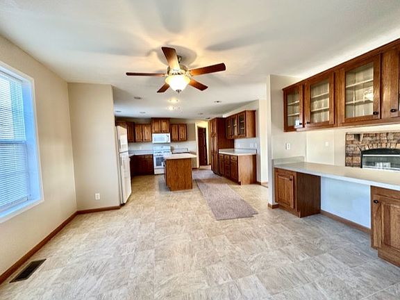 Let us give you a tour of this beautiful home! With new paint, carpet, deck, appliances, and newer metal roof, you will be ready to pack your bags and move right in! The home is a 2009 Glen Brook Manufactured that is 1680 Sq Ft of Livable Space. Upon entering you will love the spaciousness! You have an open layout of the Kitchen, Dining Room, and Living Room. The Dining area is large and could be used for other uses as well. The kitchen is very large and has an abundance of cabinet and counter space, as well as brand new appliances. An island adds to the storage and makes working in the kitchen enjoyable. The big living room has a large sliding door to back deck giving you the ability to enjoy the back yard view. There is a gorgeous fireplace to keep you warm and cozy on these winter nights. On the West side of the home is the Primary Suite, and it is massive! Not only is the bedroom large, the closet is an impressive 14.4x5.7! The En Suite Bath has a shower with double seats, there is a double sink vanity, a large garden tub, and storage space. This part of the home will make you feel like royalty! The 2 other bedrooms and bath are on the opposite side of the home. All of which are spacious! There is a desk/ study area in the hallway giving you a nice place to house your electronics. The bedrooms both have walk in closets as well. The Bathroom is a nice size and has a bath/shower combo. A large laundry room has extra space for storage or a deep freeze and has a door to the backyard also. The home has 6 panel doors throughout, nice windows for sunlight, and neutral colors to accommodate your style. The backyard is partially fenced and the front of the home has good sidewalks. Room Sizes: Living Room 17x14.9, Dining 11.4x11.5, Kitchen 16.4x14.4, Bed 14.2x15, Closet 14.4x5.7, Bed 14.3x11.2, Bed 11.5x10.4, Bath 14.4x8.4, Bath 9x4.5, Utility 11x10.4, Study 12.7x3.5. City Utilities, Amren Electric.