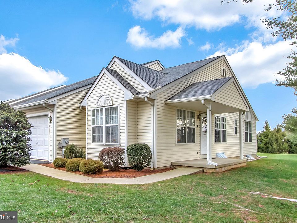 This Home is the perfect place for first time homebuyers, downsizing homeowners, and anyone looking for One Floor Living featuring Two Bedrooms, 1.5 Baths, Kitchen with all appliances, Large Living Room with plenty of Natural Light, Dining Area off Kitchen, Master suite also with attic storage, Second Bedroom has French Door to Rear Patio, Full Basement with Gas Heat and Hot Water, perfect for finishing with high ceiling and loads of room, one car garage with inside access and Opener. A Brand New Roof less that One Week Old has been installed for your continued Maintenance Free Living and yes, a large Rear Yard for Summertime cookouts and Fun Activities. Did we mention that all Lawn Care and Snow Removal is done for you and the Community Fee for this is only $50 per month. Don't miss this beautiful home! Showings begin Wednesday January 20th.