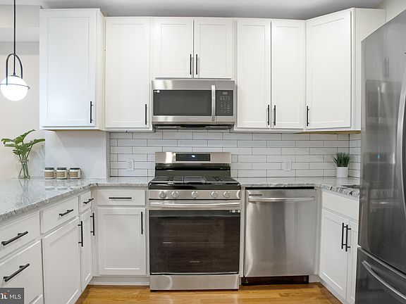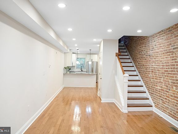 A newly renovated interior unit with all the bells and whistles in the Patterson Park Community. A rear find features a large parking pad that can accommodate 3–4 small vehicles. This home is ideally located 15 min (5.4 mi) to Johns Hopkins University and 38 min (17.5 mi) to Johns Hopkins Hospital. This three-story property offers 4 bedrooms, and 3 bathrooms is move-in ready. Here is a look at some of the features you will get when you make this property your next home: Main Leve: Features an open floor plan, hardwood flooring throughout, a living & dining room combination, modern kitchen with white ceiling height cabinets with flat black hardware, quartz countertops, white subway tile backsplash, built-in microwave, dishwasher, exhaust fan, refrigerator, and stainless steel appliances. Upper Level: Master Bedroom: Offers a spacious layout with an en suite bathroom with a jacuzzi tub and double vanity. A second bedroom with an upper deck, a hallway bathroom featuring a 60 inch shower, rainfall shower head, and a double vanity with white Caribbean marble tiles. Basement Level: Features a completely finished basement with sizeable two bedrooms and sizeable closets. A third hallway bathroom shower with a 60 inch wide shower area, white Caribbean marble tiles and vanity. It also has a designated laundry room with washer and dryer hookups. This home is central to community centers, gyms, transportation, walking trails, sports fields, and a lake that is perfect for outdoor activities. The neighborhood also boasts a vibrant dining scene, with trendy cafes, restaurants, and bars within walking distance, providing endless options for culinary exploration.