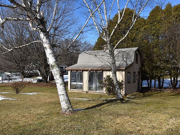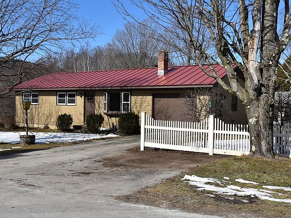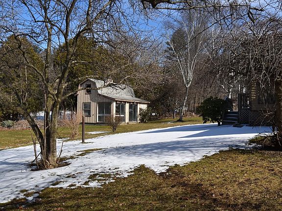 Such nice curb appeal! With it's cedar sided exterior, newer front door, striking standing seam roof, Red Maple trees, decorative fencing, perennials and White Birch trees driving into your driveway every day will feel like home. This easy one-level living ranch home is located just up the road from the village of Wallingford, where you'll find the library, school, convenience store and local eateries. The home has built-ins in several rooms, oak hard wood floors, and a brick hearth in the living room. Enter from the attached one-car garage into the kitchen with a center island, ample cabinet space some with glass doors to display your favorite dishes and dining area. Opens into 12x18 window wrapped family room with pine floors, skylights and door to the back yard. The Gambrel style workshop/barn with concrete slab comes complete with work tables, has overhead storage area and is ready for a multitude of uses. Set on just under half an acre, with a nice lawn, mature shade trees in a residential neighborhood.