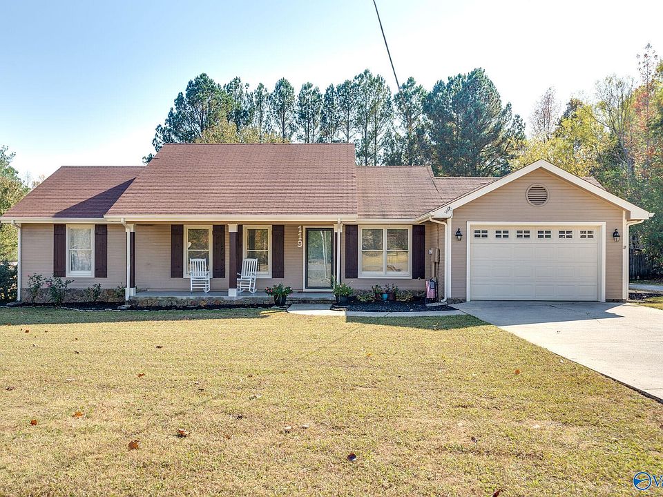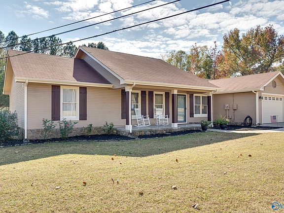 Beautiful 3 bedroom/2 bath home with a 1 car attached garage AND a detached 24 x 24 workshop/garage wired with 220 volts. The family room is the heart of the home with a woodburning fireplace and vaulted ceilings. The galley style kitchen is very organized and has updated appliances. Large master suite and two generously sized bedrooms complete this efficiently designed home. The home is situated on a .66 acre lot with a screened in porch overlooking the backyard. Conveniently located close to shopping, restaurants, medical facilities, gyms, Redstone Arsenal and only 15 minutes to I-65. Roof - 2011. Very well maintained home!