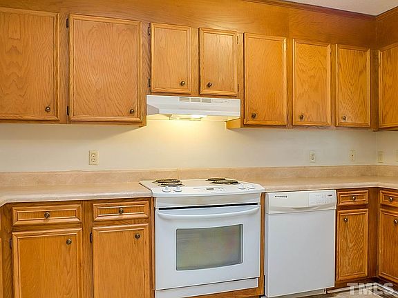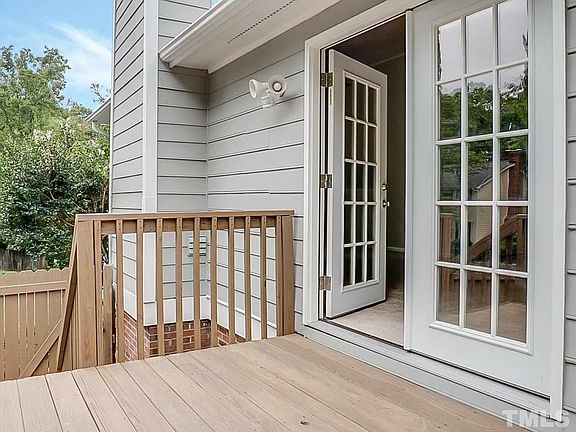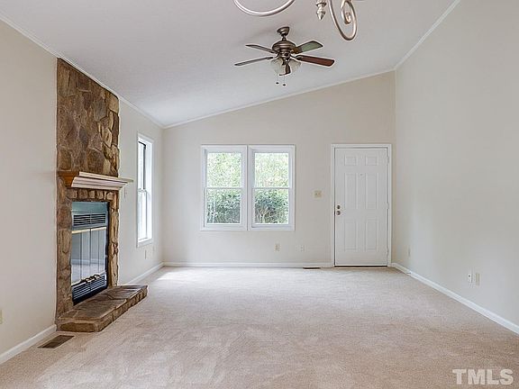 This Cary one-story corner home offers a deck, a fireplace, and a one-car garage.