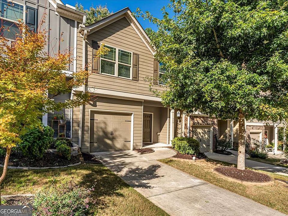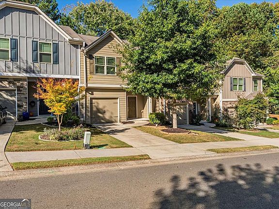 Welcome to this beautifully kept 3-bedroom, 2.5-bath townhome in the sought-after River Green community! Perfectly situated within walking distance of the neighborhood elementary school, this home offers a wonderful balance of comfort, style, and convenience. Step inside to a welcoming foyer that opens to a bright, open-concept living area designed for modern living. The kitchen boasts granite countertops, stainless steel appliances, a tile backsplash, and a spacious island-ideal for meal prep or gathering with family and friends. From the living room, step outside to a private deck that's perfect for relaxing or entertaining. Upstairs, the primary suite provides a peaceful retreat with a walk-in closet and a private ensuite bath featuring a dual vanity. Two additional bedrooms share a full hallway bath, and the laundry area is conveniently located on the same level for ease and efficiency. With fresh paint throughout and access to top-tier community amenities, this home offers the best of low-maintenance living in one of the area's most desirable neighborhoods.