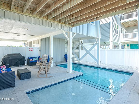 Here is your chance to own a luxurious ocean front house that is only a few years old with amazing established rental history...this is the one you have been waiting for. With 8 bedrooms, you can host all of your family and friends for summer vacations and holiday gatherings. The inverted floorplan with the living, dining and kitchen on the top floor and the wall of windows across the back of the house provides panoramic ocean views while you are entertaining. On the middle floor, there is a second living room that is set up as a game room complete with a pool table. There is an elevator that carries you to all 3 levels. On the ground level there is a tiki bar and really nice pool area complete with a sun deck. Take your personal private beach access walkway out for a fun day on the sand playing beach games or fishing. This house is sold fully furnished so you can begin enjoying it right away. Holden Beach is known as North Carolina's family beach, come see why today and start making memories here!
