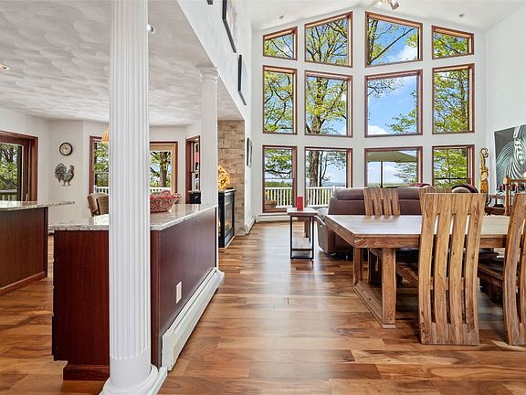 A truly captivating Contemporary awaits it's new owner! This stunning home is on over 8 private acres and is nestled within the woods featuring magnificent views. Prepare to be impressed as you appreciate the flowing floorplan and unique spaces. As you enter the welcoming foyer you will feel the aura of tranquility. This home is all about refined center space and functionality, amidst the great room with the large windows opening the outdoors in, expansive cherry kitchen, a charming enclosed porch, library room, music room, an amazing game room in the lower level, spacious bedrooms and bonus spaces. Huge vaulted ceilings and marble floors. Step outside and relax on the deck or wander through the woods. Enjoy easy entertaining and relaxing summer days by the pool in this beautiful Vestal home. Located within a few short miles to restaurants, shopping, and commuter routes, this property is a must-see. Brand new septic system and Generac whole house generator.