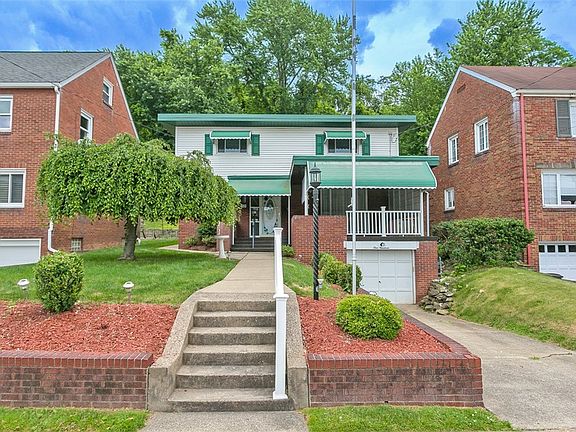 This spacious two-story brick home is nestled on a quiet back street in Glassport. The front of the house welcomes you with its newer awnings and a covered front porch that has ample space for seating and offers the ideal setting for outdoor entertaining. The 1st floor includes a half bathroom, a large living room w/gas fireplace and a dining area. Adjacent from the kitchen you will find a family room and a separate dining room. The kitchen includes stainless steel appliances with lots of storage space. The 2nd floor boasts four bedrooms and a full bathroom with newer shower. The basement includes a large finished game room, a half bathroom, laundry room and lots of extra storage space. Venture to the backyard which includes a fire pit and newer shed. House has been freshly painted and includes newer laminate flooring on the 1st floor.
