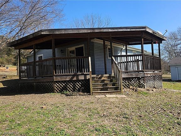 This 3 bed 2 bath rural home sits on a generous 1-acre lot, surrounded by lush greenery with trees, providing a sense of privacy and tranquility. It has a covered wooden deck, where residents can relax and enjoy the scenic views of the countryside. It offers a perfect blend of comfort, space, and natural beauty, making it an idyllic retreat for those seeking a peaceful countryside lifestyle.