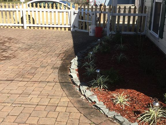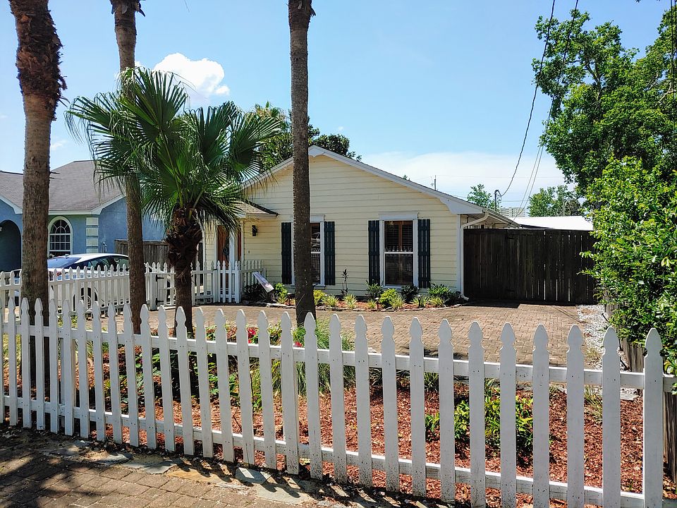 An unbelievable find with a ten-minute walk to the beach to be sold completely furnished. No grass to mow! This is an adorable two-bedroom, two bath home that is move in ready. It features a stunning pool right off the master bedroom. Landscaping is immaculate. The home is located in Open Sands which is a golf cart community minutes from Pier Park, the beach, PCB nature/bike trails, and other activities. Beautiful palm trees are surrounded by gorgeous landscaping/pavers in the front. There are two citrus trees on the lot, a Meyers lemon tree and a Key lime bush. Plenty of concrete parking. Privacy fence completely surrounds the property. Located in a wonderful, quiet and safe neighborhood. Other benefits include no HOA fees, not located in a flood plain and zoning/restrictions. We have no for-sale sign in the front, it is only advertised on Zillow. --New roof(architectural) in Aug. '14. --Walk in closets --Full size washer and dryer in the utility room --New water heater (Oct 2018) --Kitchen is newly renovated. Like new cabinets and stainless-steel appliances. --Bamboo-hardwood flooring. --Marble flooring in wet areas. --Yard is professionally covered in brick pavers front, sides and rear, no grass to mow! --Second bedroom is furnished with 2 new full beds. --Beautiful inground gunite pool with waterfall. Pool is screened with concrete stain. --The Pool was re-plastered and an energy efficient pump installed in spring of 2017. --There is new (Spring 2015) detached 9x10 building with electrical that holds a 4 passenger golf cart for driving around the beach and other outdoor items. We've never rented this house, it has been only used by us since our purchase.