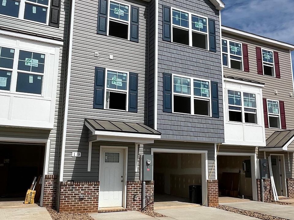 New Town Homes under construction in The Communities of Burwell featuring 1935 sqft of living space. Home has bump outs in main level family room and upper level secondary bedroom, spacious open floor plan, 4 bedrooms/ 3.5 baths, Kitchen with granite countertops, separate island and island bar to family room, stainless steel appliances, and luxury vinyl plank flooring throughout the main level. The upper level primary bedroom has vaulted ceilings, walk in closet, and full bath with tile shower and glass door. The lower level offers 4th bedroom and full bath. Exterior brick on front, 1-car garage with auto opener, and concrete driveway included. **photos are similar construction**