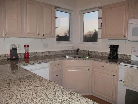 Enjoy this open floor plan with vaulted ceilings and skylights throughout! Kitchen features granite countertops, walk-in pantry and corner sink with windows. Master bedroom suite has walk-in closet, double shower head/vanities and walk-out to 40' deck. First floor laundry. Mud room and 1/2 bath off of the 4-car garage. LL has exposed family room with wet bar, den, 5th bedroom, future theater room, and 3/4 bath. Main floor bath has 3 vanities. All this on 1/2 acre lot.