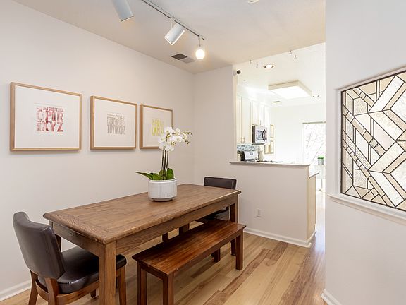 Remodeled townhome in the sought-after Crossings neighborhood. Top-rated Los Altos schools! Living room features a gas-log fireplace stylishly outlined in tile beneath a plaster mantel. Formal dining area is fully open to the kitchen and has a striking in-wall leaded glass feature plus track lighting. Remodeled kitchen has white cabinetry topped in granite, full-height glass tile backsplashes and stainless steel appliances. Expansive master suite with soaring vaulted ceiling, full wall of closets, and remodeled en suite bath. Second bedroom with vaulted ceiling, rear-facing window and wardrobe closet. Lower-level third bedroom with laminate wood floors, center light, walk-in closet and adjacent bath. Amazing location where Mountain View, Palo Alto and Los Altos meet. Community includes community pool, spa, clubhouse, play area, and parks. Just steps to Caltrain, shopping and dining at The Village at San Antonio Center and with easy access to highways 101 and 280.
