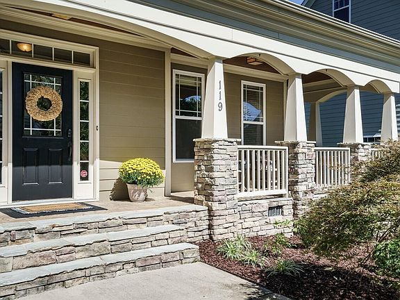 Resort style living in popular Amberly Peninsula! This appealing 5 bd/3ba home features a welcoming foyer, storage in the mudroom, butlers pantry, updated backsplash with 2 sinks and with eat in breakfast nook, new stainless stove and microwave, separate dining, office, spa like shower in master, 2nd floor has a built in office nook, the unfinished 3rd floor has 1947 sq ft. of potential living space! Throughout this home you will find exquisite trim, built ins and coffered ceilings, new paint, wakeup and have coffee and join your zoom call on the wrap around porch or sit back on the oversized screened in porch overlooking a huge fenced backyard. The community offers: pool, playground, fitness, soccer field, local taproom, access to Tobacco Trail, low travel commute to RTP, Apple campus, and shopping. Seller paid Home Warranty! Ask about credit with use of preferred lender! Someone's going to be very happy here...let it be you!