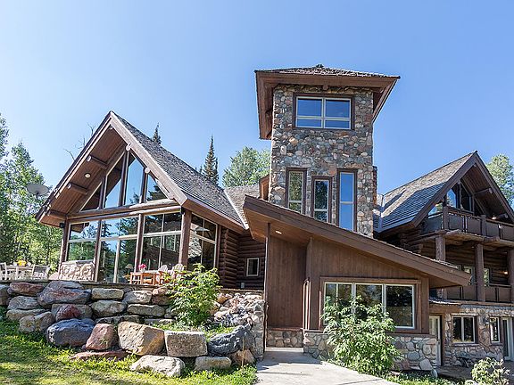 Seamless Ski Access best describes this estate's location, both departing and arriving on grade from Bridges Ski Trail to its ski room with equipment storage and boot warmers. Recently re-modeled with a mountain contemporary flair, 119 Palmyra is the ultimate retreat for generations of family that comfortably sleeps seventeen within six spacious bedrooms and bunkrooms. Expansive mountainous views from the great room explode at entry through floor-to ceiling windows spilling sunlight upon a two-and-a-half-story great room replete with a steel and glass fireplace. The open main level floorplan flows effortlessly to the dining area and a chef's kitchen with breakfast bar, concrete countertops, hand crafted cabinetry, upscale appliances, including built-in Miele coffee maker,