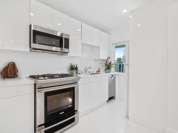 Bright interiors feature soundproof windows, wood floors, Caesarstone counters, stainless steel appliances, and A/C units. The home also offers the convenience of on-site laundry and on-site parking.