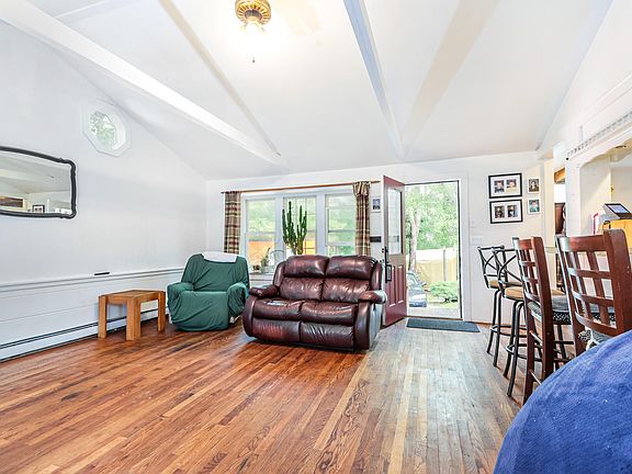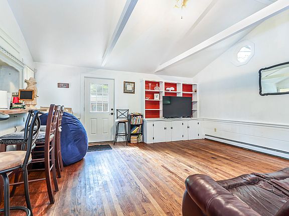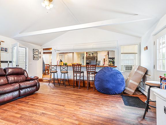 Opportunity awaits! This Cape Cod style home includes a first-floor primary bedroom equipped with a Whirlpool air conditioning unit, his and hers walk-in closets, and private deck. The living room, dining area, foyer, and first-floor primary bedroom feature hardwood floors throughout. The first-floor full bath, kitchen, and hallway has tile flooring and new recess lighting. The second deck is located off the living room. The kitchen has tile countertops, white cabinets, and newer appliances; electric Samsung stove and oven, Maytag microwave, LG dishwasher, and Fridaire refrigerator. The second-floor features two bedrooms and one full bath.