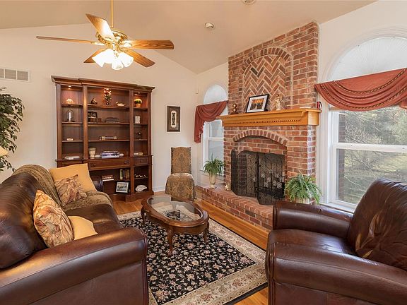 Don't miss this 3-bedroom, 3 1/2-bath, 3 car attaches & 3 car detached, custom ranch on 2.47 park-like acres. Features coffered & vaulted ceilings, wood floor in living, dining, kitchen & hall. 2 wood burning fireplaces. A separate dining w/ bay window. Kitchen has spacious cabinetry & counter tops, a center island w/ smooth top stove, built in oven & micro. It leads to the bright & inviting sunroom. Master features a jaz. with separate shower, double vanity w/ seated makeup area, linen closet, 1 walk in closet 8x6, and an additional closet 6x31/2. Room darkening shades in all the bedrooms. LL has a wet bar, fireplace. 50x12 family room and 2 walk outs to the 24x19 patio w/ fountain. Also includes a 5x5 walk in closet, 2 storage areas 39x16 and 29x12. Tran furnace w/ humidifier ,water softener. Professional landscaped, detached garage w/ garage doors front and back for easy pulling that boat in and out .Work bench, concrete floor, electric, Fruit trees. No smokers or pets. Additional Rooms: Sun Room